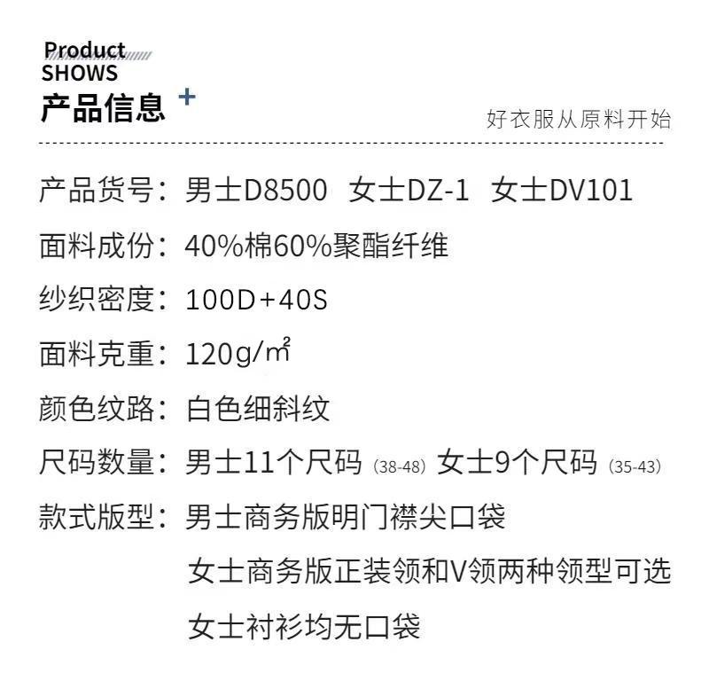 产品适用范围覆盖鹤山绝大多数行业:企业办公室职员、行政团队、销售公司客服、房产中介、保险从业者均可日常穿着;4S店销售顾问、汽车门店服务人员、商场导购、超市营业员、连锁品牌店员穿着得体大方;物业公司客服、酒店前台、餐饮管理岗也能完美适配;甚至银行窗口、医院行政岗、学校教师团队、培训机构等对形象要求高的单位,都能批量定制。一件百搭的白色短袖衬衫,真正做到一衣多用、全场景适配。