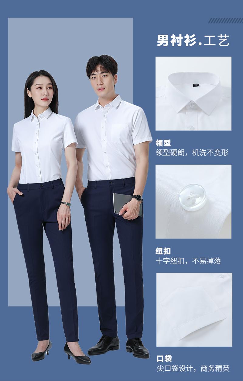 鹤山细斜纹白色短袖衬衫定制|男女同款企业工装,20年工厂免费打样