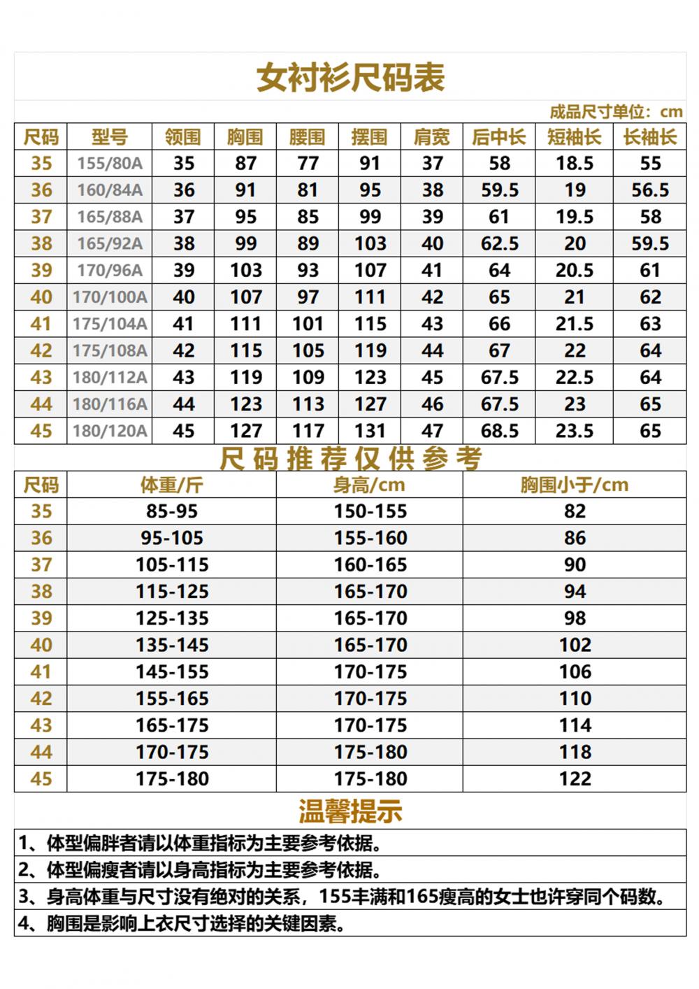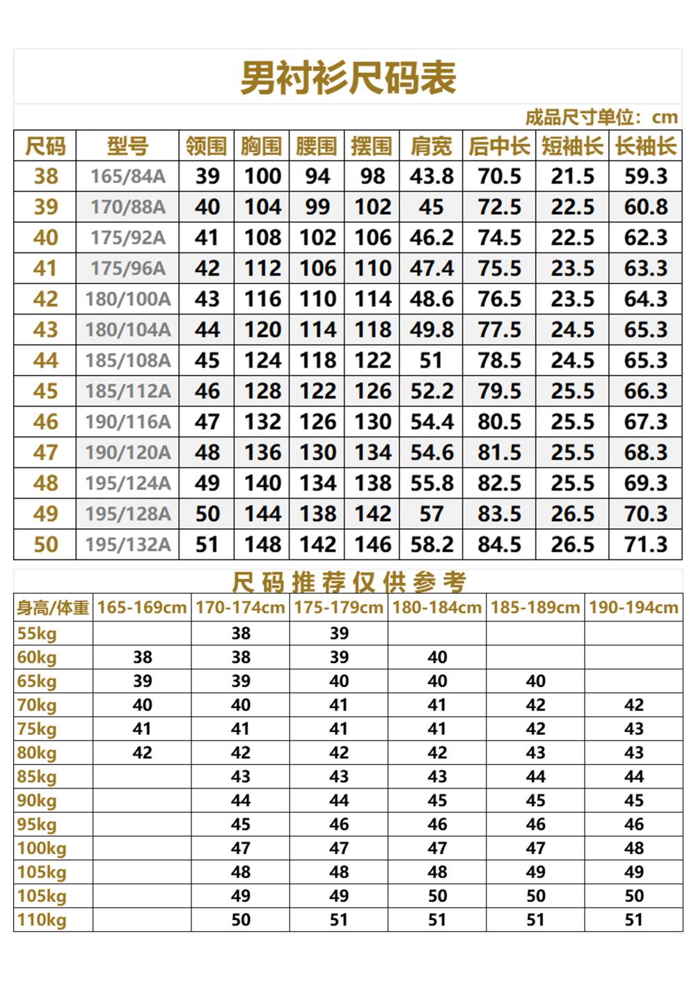男衬衫尺寸38;39;40;41;42;43;44;45;46;47;特殊码